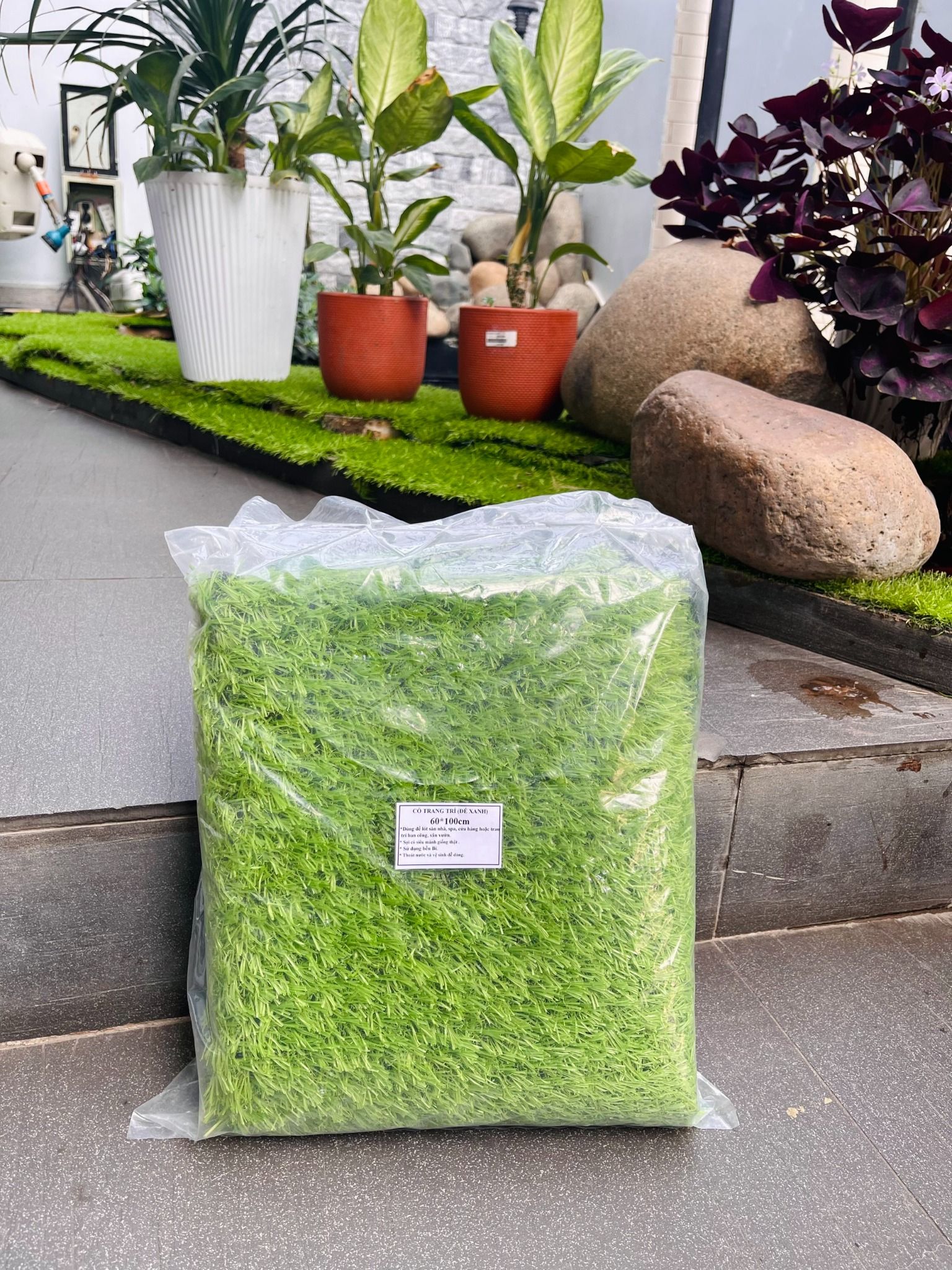 - Cỏ nhân tạo sân vườn: Được sử dụng để trang trí sân vườn, ban công, sân thượng, tạo không gian xanh mát cho ngôi nhà.
