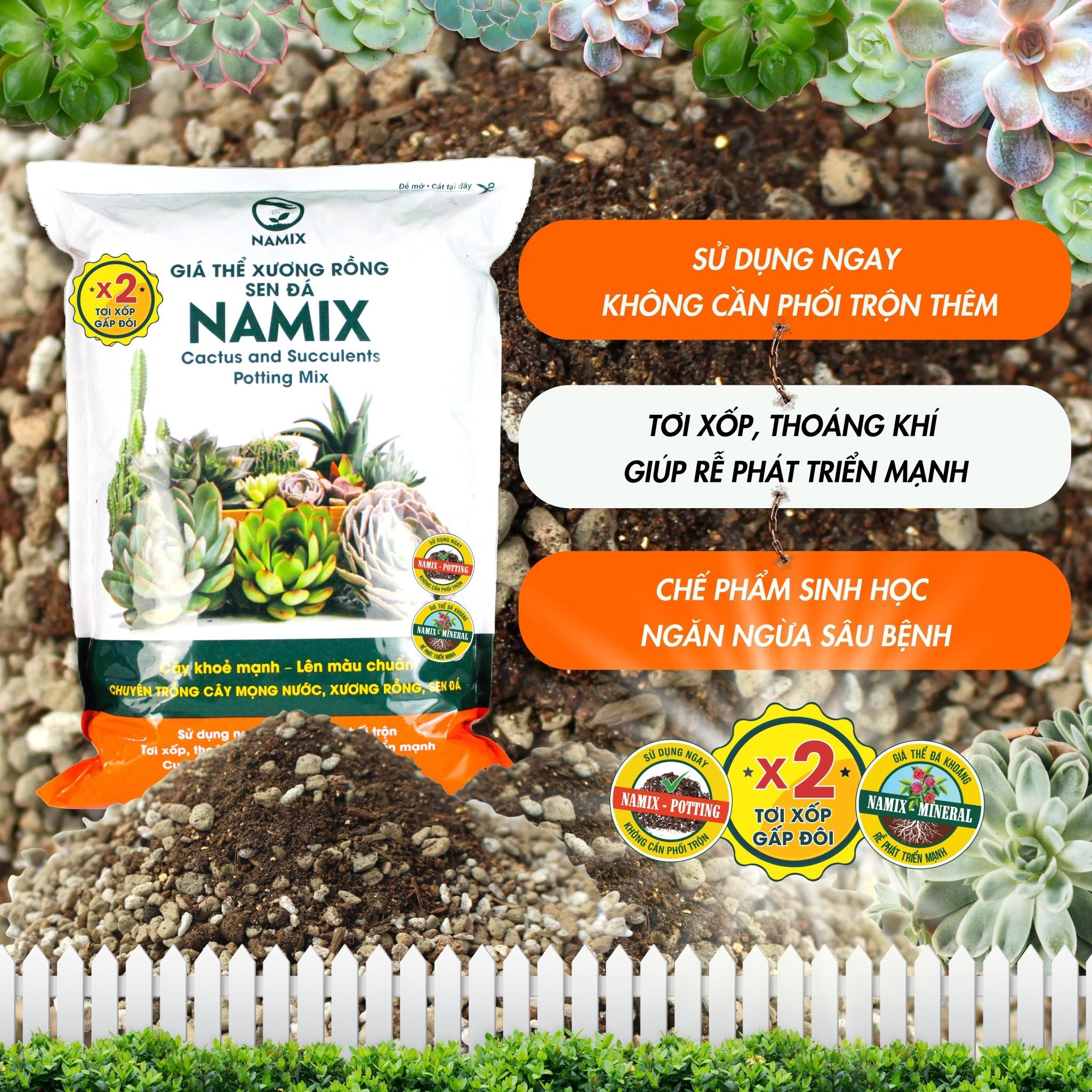 Giá thể xương rồng sen đá Namix